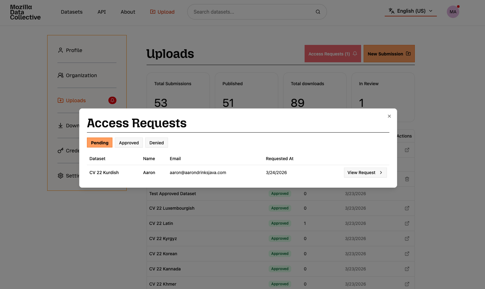 We’re excited to release a new way for dataset uploaders on Mozilla Data Collective to control how their data is shared. Until now, dataset access has been governed by a combination of license terms and the addition of additional restrictions as part of the consent-to-download flow. While this provides important legal and usage guardrails, it doesn’t allow for more granular, case-by-case controls.