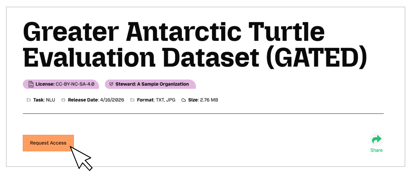 - Request Access Flow: Gated datasets now display a “Request Access” button instead of “Download”
