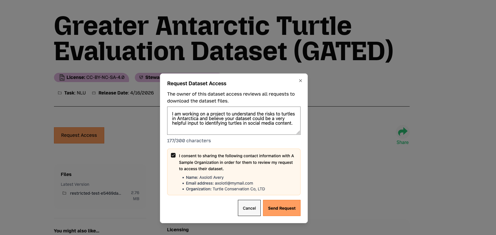 With this release, uploaders can now gate access to their datasets, requiring users to request permission and share their email address before downloading.