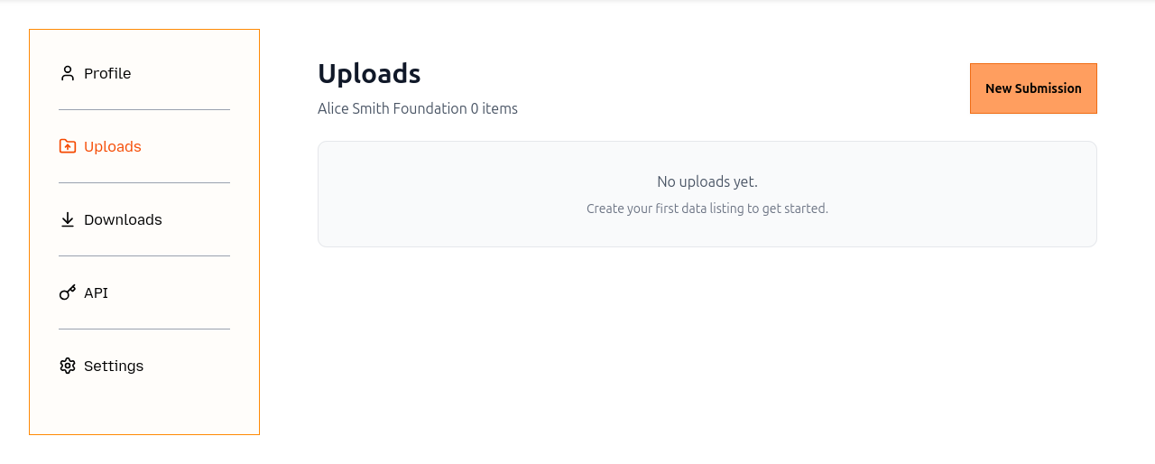 After your request has been approved, visit the same "Uploads" page and you will see an option to create a "New Submission".